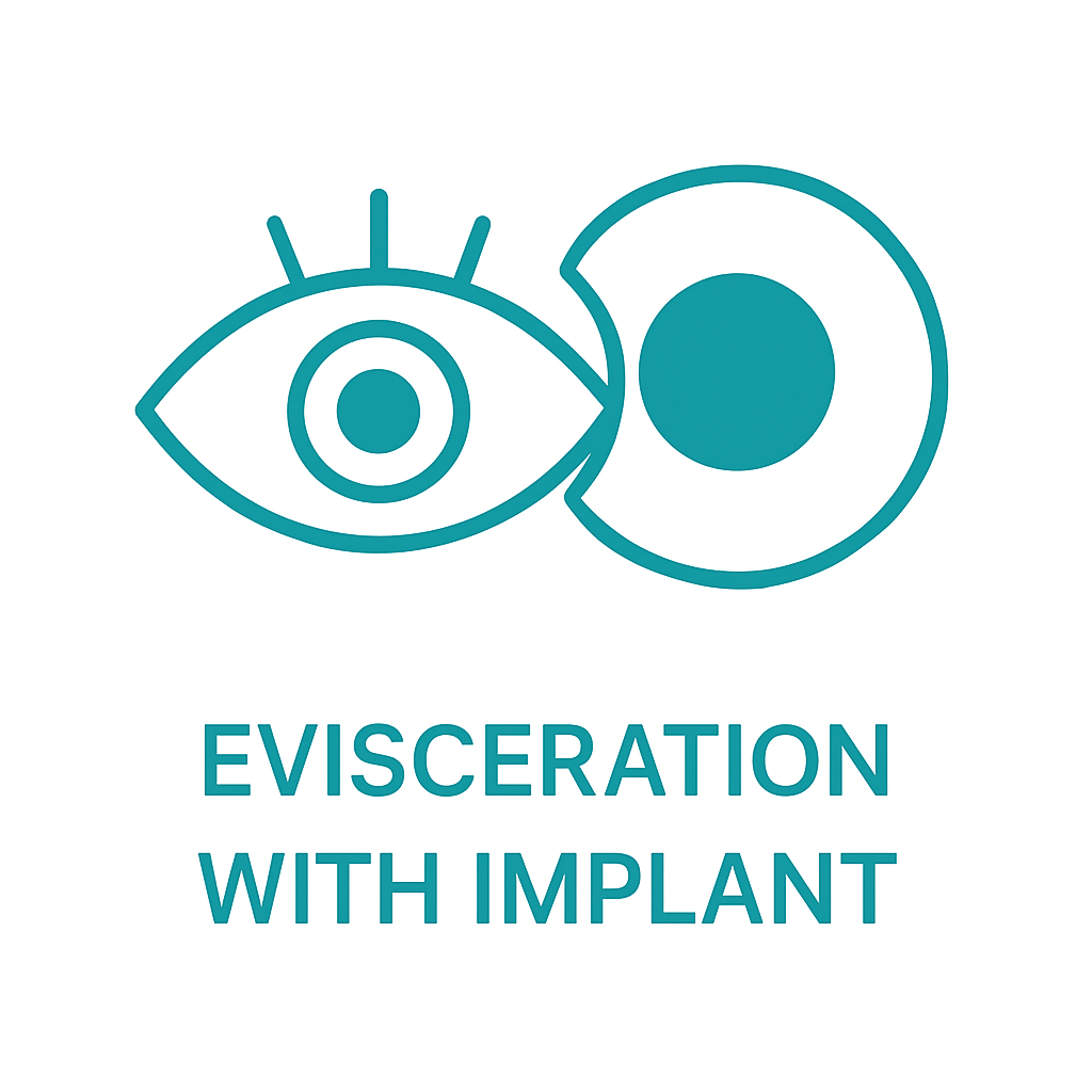 Evisceration with implant is a surgical procedure where the eye’s contents are removed and replaced with an implant to maintain orbital structure and cosmetic appearance.