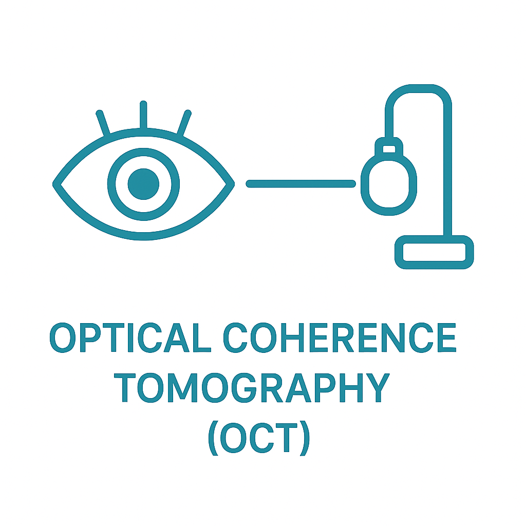 OCT (Optical Coherence Tomography) of the eye provides high-resolution cross-sectional images of the retina to detect and monitor diseases like diabetic retinopathy.